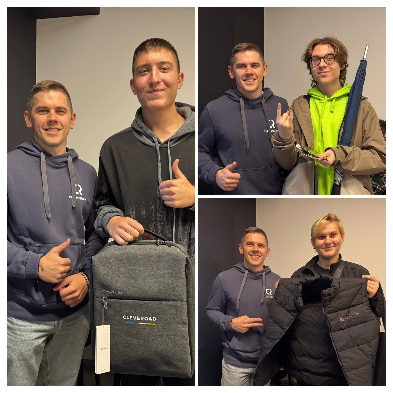 А ще під час заходу відбулася лотерея, у якій усі учасники отримали брендовані подарунки Cleveroad. Також ми провели додатковий конкурс із суперпризами, що викликав справжній азарт і море позитивних емоцій серед студентів.
